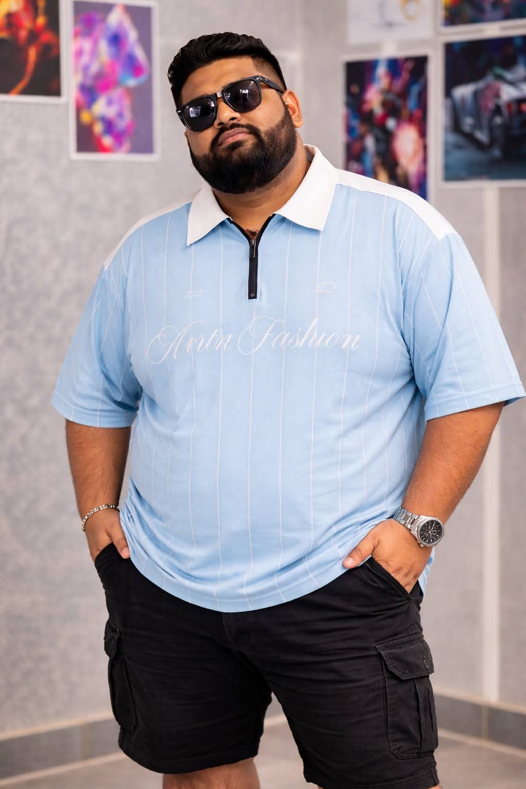 Oversize Premium Polo Shirt Dropped Shoulder – SKY BLUE| TUHIN FASHION